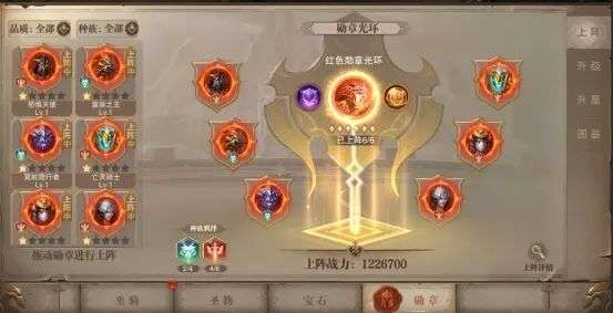 勋章分为多个种族,红色品质的勋章带有种族技能。每个勋章最高5星,升星需要依次点亮星位,每点亮6个星位可升星。
