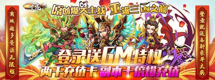 《十虎》是一款完美融合三国历史的Q版卡牌手游,深度优化版本,最强福利强势来袭,登录就送2000充,GM商城特权全白嫖,让你的游戏之旅更加顺畅欢快。游戏还拥有超立体战斗界面,酷炫攻击特效,每个角色都栩栩如生。其中多元化的武将培养方案,上百种武将技能搭配,扣人心弦的插台厮杀,让您重燃三国热血的激情。游戏玩法众多,签到就送顶级圣卡,挑战副本无限掉落充值卡,率领自己喜欢的三国名将一起征战四方吧!