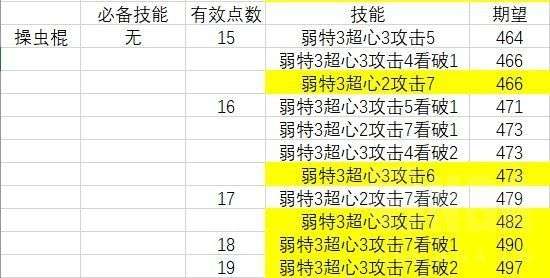 15点:最优为弱特3+超心3+攻击4+看破1