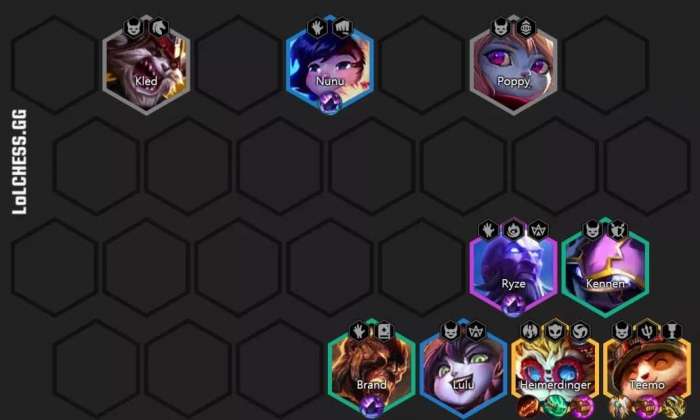 8人口只要找到一个提莫就能够凑出3丧尸5小恶魔成天胡了,如果没有找到提莫也没有关系可以考虑上艾翁+狗熊凑出2亡魂羁绊继续打工即可,当然也可以上一个大眼仔拿来中期过渡打工。