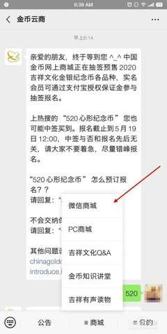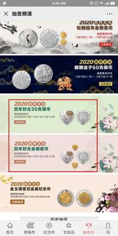 2、然后点击抽签购,在里面就可以选择520心形纪念币种类了,比如2020百年好合金银套币或者是百年好合30克银币。