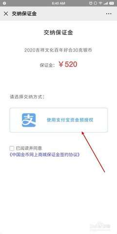 4、接下来需要支付宝资金预授权。
