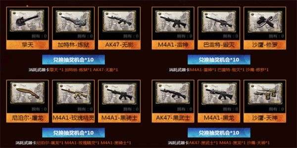 武器收藏卡兑换:消耗指定收藏卡,可兑换传说秘宝抽奖次数;