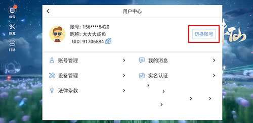 随后你可以直接点击这个账号,然后在用户中心的右边,可以看到【切换账号】的按钮,点击一下,即可进入切换了。