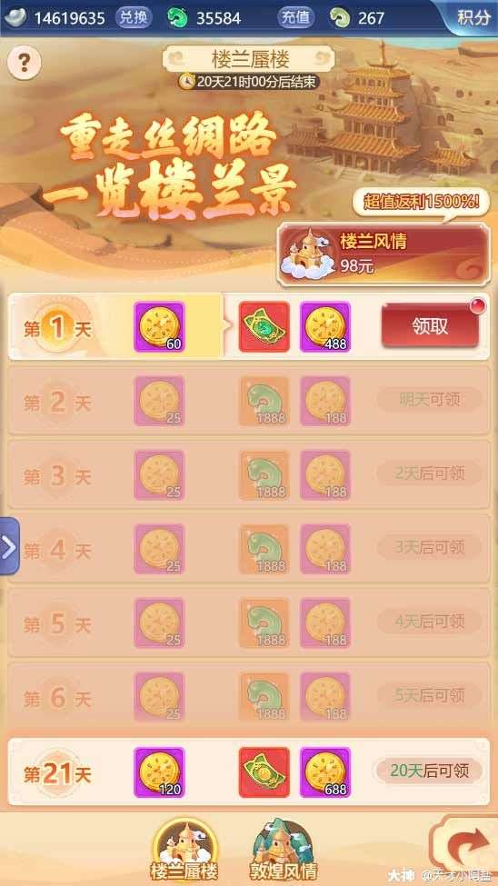 参与楼兰绮梦的各种活动,可积累暑假活动积分。