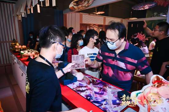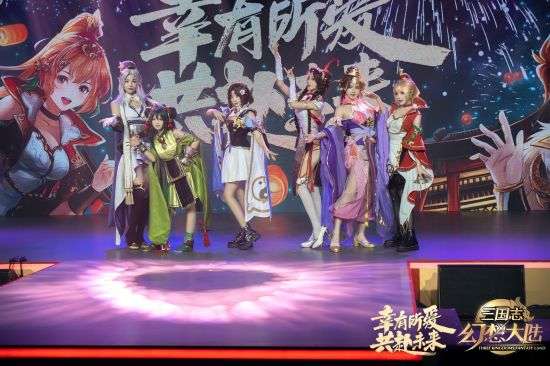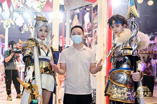 在正式演出开始之前,武将小乔Coser化身现场导游,带领场外观看直播的玩家开启线下游园逛展,从精美的原画墙、同人展和梗墙,与现场的武将Coser们互动打卡到猜拳、答题、温泉里找石头等小游戏互动,不仅领略到诸多美丽帅气的武将,如马云禄,赵云,貂蝉,孙尚香的迷人风采,还感受到了场内外玩家对三幻的饱满热爱和热情,更收获了满满的周边大礼包!