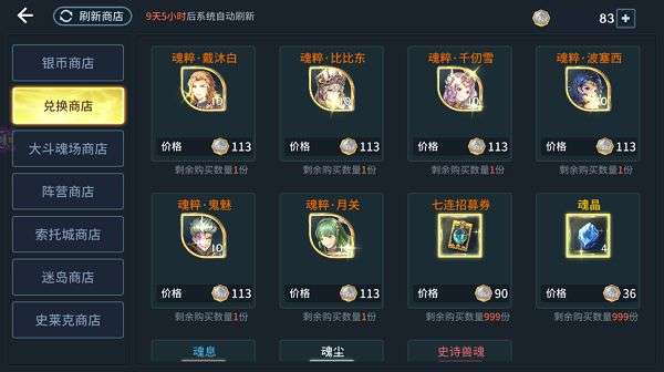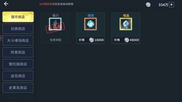 最简单粗暴的一个商店,只有三样东西售卖,每日免费领取的魂力千万不要错过。