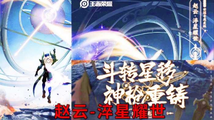 这款皮肤中,赵云化身为仙界的星君,在下界历练时,他唤醒神力重铸神枪,并最终战胜了强大的邪祟。这款皮肤的命名“淬星耀世”正是对这一背景故事的写照。