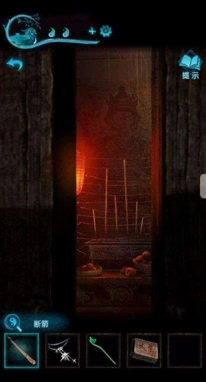 到车的位置,按照顺序点香,比较难点,点完获得字迹,可以解开山洞前面石狮子脚底下的机关,获得一把钥匙。