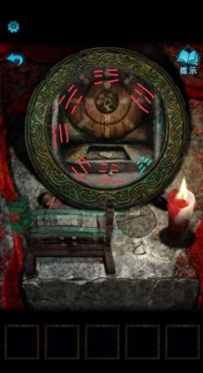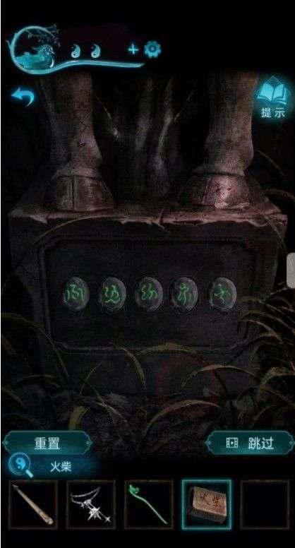 拿到镜子返回车旁边,把镜子放上,再把蜡烛放上点上火,记住镜子上闪烁的八卦字符,石门打不开去山上,按顺序打开丧石块,获得箱子和金贴画。