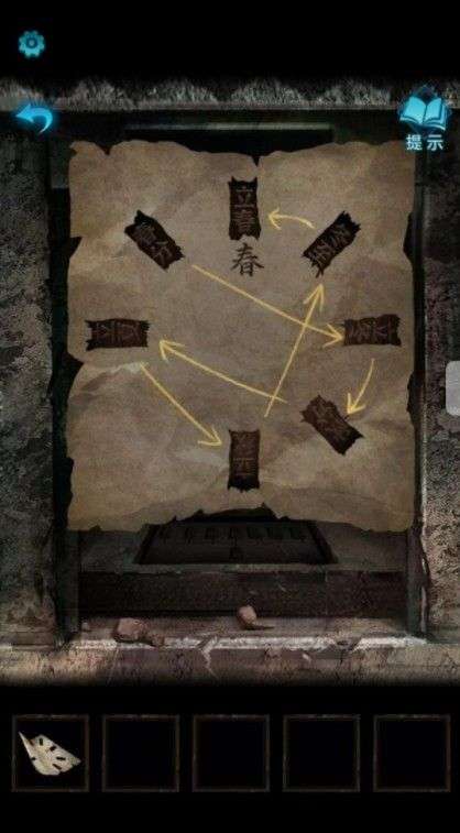 回到祭坛,上山,要爬几次才能上去,把图贴在二十四节气的图上,得出答案,解开下方滑块,得到招魂令,放到祭坛上。