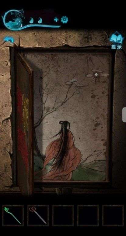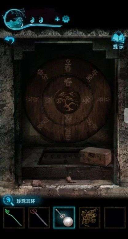 回石门拿箱子卡主石门,把贴画贴在最里面的红贴纸旁边,把珍珠耳环扎在右上角的洞上,拿到阴阳玉。