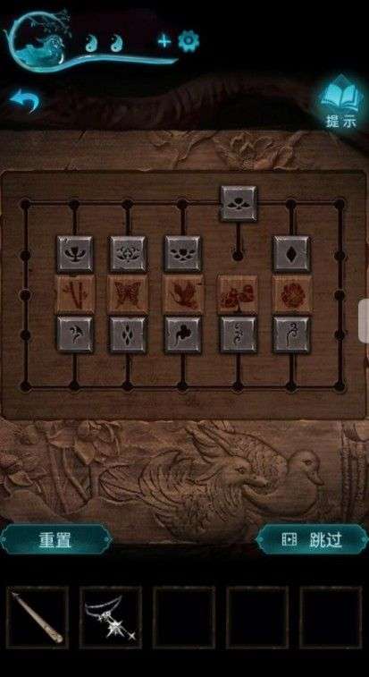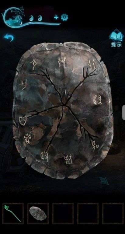回前面把阴阳玉钳在上面,黑白相反打开石壁,记住图案,打开里面的柜子,找到龟壳。