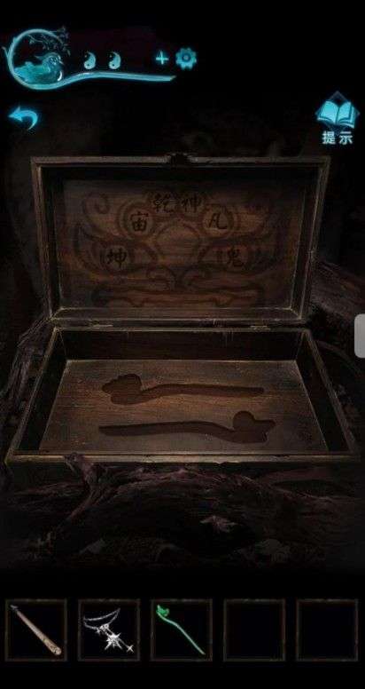 演奏完会有仕女出来,拿走酒杯,不能酒祭。回到车旁看剧情,上山把酒倒给树。开箱子记住上面的符字,坤宙乾神凡鬼。