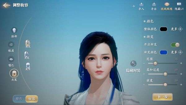 点击进入到界面的时候,你可以预设自己的脸型,还有各种的细节需要捏,可以在里面随意的挑选好自己各种细节,挑选好各种细节点击完成就好了,或者是点击导入别人创建的,免去了很多复杂的操作。