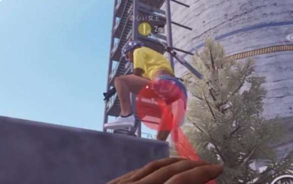 关键步骤来了,让你的队友对着你得jiojio或者腿部扔投掷物,这时候你就会发现你神奇的被弹射到了水泥柱的楼梯上。