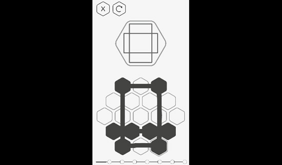 《点线模仿》(rop)是一款画面简洁的解谜游戏。玩家需要按照游戏给出的图形,利用屏幕下方有限的六角形点来围成那个图形。