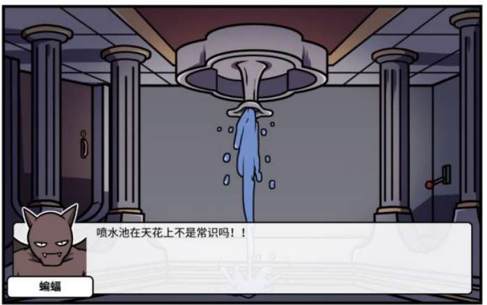 打开右侧的开关后会喷水,导致楼层积水,之后蝙蝠会阻止你再打开开关