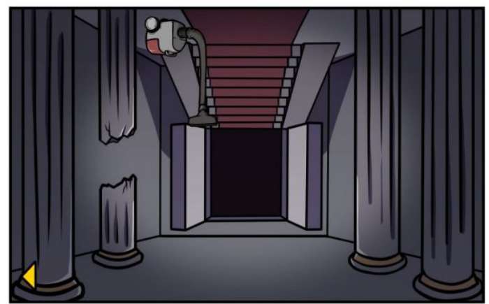 虽然密码门启动了,但密码仍然未知,向蝙蝠请求开门,但因为天窗的阳光太猛烈它不想靠近,所以需要用布把天窗盖上,之后进入场景3