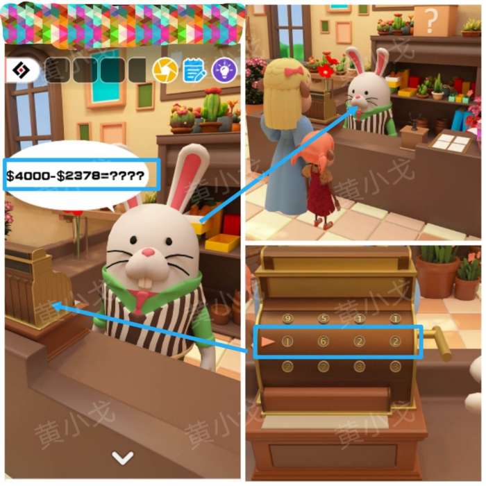3.点击兔子店员,根据对话框等式提示,在收银机上输入算出的金额:1622