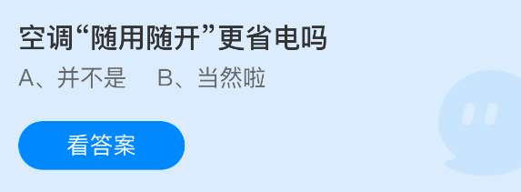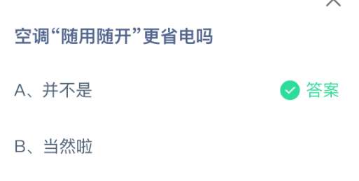 空调“随用随开”更省电吗?支付宝小鸡课堂开课啦!每天只需花一分钟,动动手指答对问题,180g饲料立马到账!不仅自家小鸡吃得饱饱的,还能顺便捐个爱心,一举两得!2026年4月1日蚂蚁庄园的小鸡课堂题目正确答案是【并不是】,空调“随用随开”更省电这种说法并不是正确的。