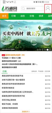1、打开网药通app,在首页中点击右上角进入个人中心