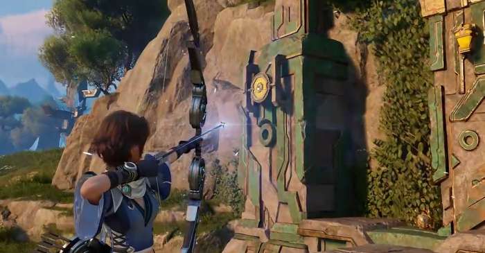 打完机关人之后,抬头看一下洞窟的顶部。上面挂着一个目标物,这个时候就需要用到燃烧果了。把燃烧果扔到那个目标物上面,就会触发一个解谜机关。这个解谜过程不算特别复杂,按照提示操作就可以了。解谜完成之后,旁边会出现一个宝箱,记得把宝箱打开拿一下里面的东西。