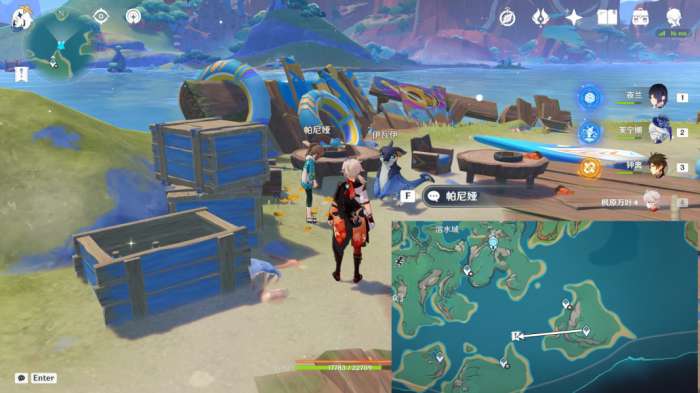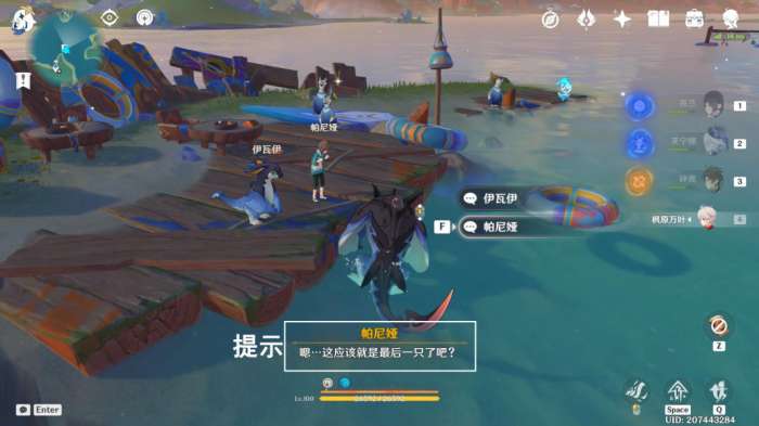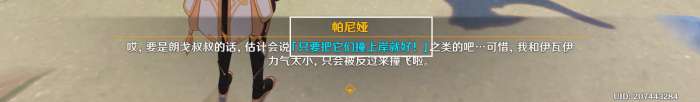撞3只浮流鸟上岸后,等待对话提示,与帕尼娅对话