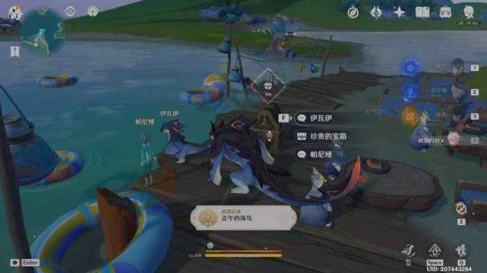 对话结束,获得成就「正午的海鸟」,获得珍贵的宝箱