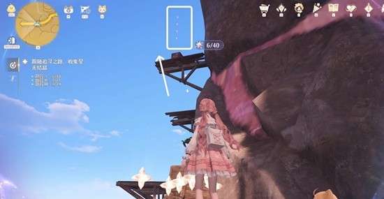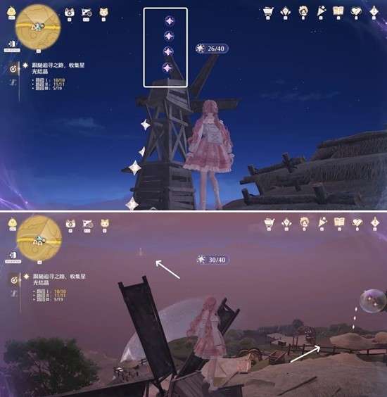 路段三,跟着噗灵指引,贴着粉色晶体石壁走。风车上有四颗,然后跟着噗灵到起点的方向,面向大喷泉飞过去到达终点。