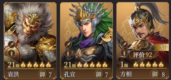 其他武将,黄天祥武力成长极高,武力伤害型阵容缺少副C时可以考虑。苏全忠普攻即可挂易伤,在追击、连击体系中都能获得一席之地。殷郊+苏全忠+黄天化,利刃、易伤和全队增伤叠加,输出又快又给力。袁洪可盾兵可骑兵,他担任主将的妖将盾(反击盾)之前赛季就很实用。如今换上新出的XP武将,目测强度还要更高。建议抽2只,一只传道换九息服气。