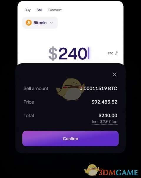 2、在“卖出”屏幕上,将选择默认资产。如果您想要卖出其他资产,请点击资产名称。在搜索栏中,输入您想要卖出的资产的名称。选择您想要卖出的资产。在此示例中,我们将卖出 BTC。