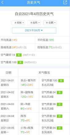 3、打开“历史天气”页面后,即可查看到当地的历史天气。见下图
