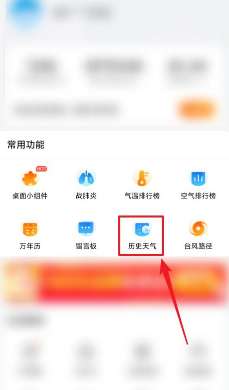 2、在“工具”页面“常用功能”下,点击“历史天气”。见下图