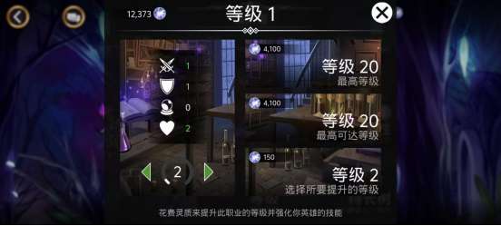 1、职业等级:点击升级按钮,你会看到熟悉的界面。提升职业等级同样需要消耗灵质,随着等级提升,你的英雄在使用该职业时,攻击、护甲、生命等三围属性会得到增强。