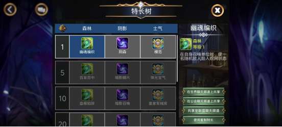 每个职业都有三个不同的天赋方向,比如编织者拥有:森林、阴影、士气。 每当达到特定的等级节点(如1级、5级、10级等),你就可以从这三个方向中选择一个天赋激活。