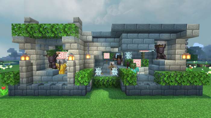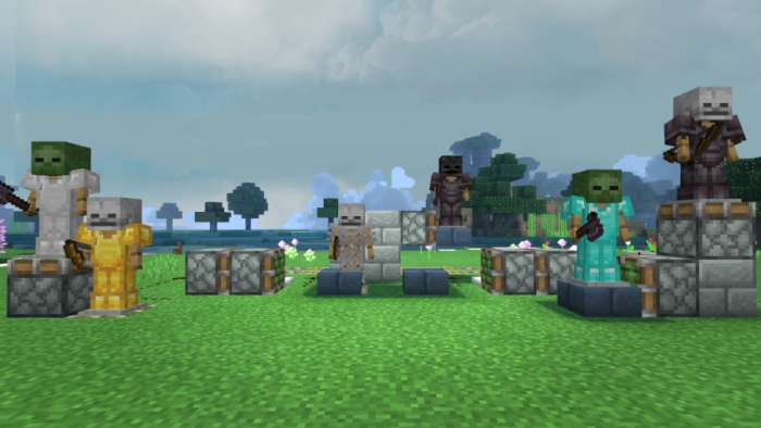 史莱姆这次用了石砖等方块装饰场景,更好地营造练习场的氛围