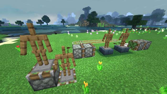 当然也可以把盔甲架放在台阶上,这样盔甲架就只会随台阶移动,而且会更加稳定