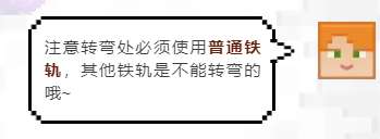 首先找一个合适的地方把探测铁轨、加速铁轨、普通铁轨按照如图方式闭合起来,其中长度为9格,宽度为2格