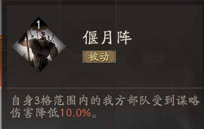 任何星级都推荐必带的数值怪被动技能,通过走位可以轻易大幅增加自己的属性,范围指的是自身周围9宫格。增攻效果能提高关羽的斩杀阈值,确保很多时候非人为触发<拖刀计>带来的减少主动伤害的效果。