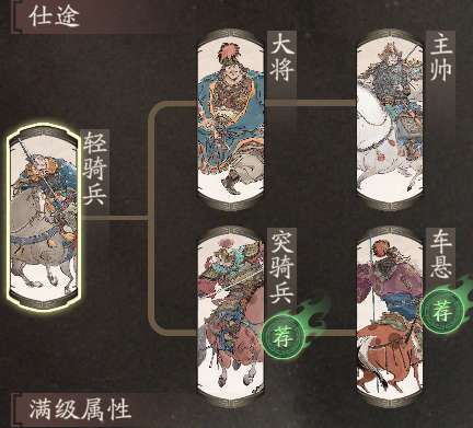 走推荐的骑兵线,骑兵线满配并且升迁达到9之后,建议卖铁砸锅用龙骧之印拉统帅线拿到<威震华夏>。