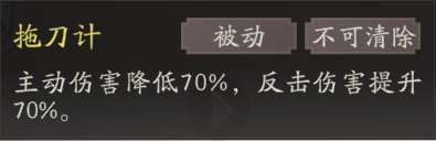 注意:<拖刀计>仅在<再行动>未进入冷却的回合生效,要避免其触发!具体操作:当关羽无法自力击杀敌军时,操作队友先行动给关羽垫刀,例如:吕玲绮释放<弧光掠影>,确保关羽击杀目标,从而不触发<拖刀计> 的减伤效果。
