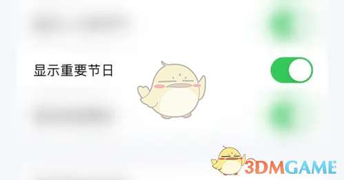 2、设置界面点击“显示重要节日”后面的圆点