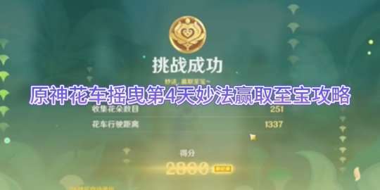 以上就是《原神花车摇曳第4天妙法赢取至宝攻略》的全部内容啦。希望能帮到喜欢这个游戏的朋友,想要了解更多相关持续关注langlangxz原神社区,这里每天会为大家推送最新最全的攻略。