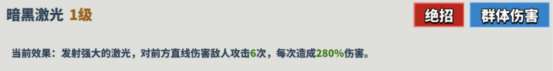 描述:发射强大的激光,对前方直线伤害敌人攻击6次,每次造成280%伤害。