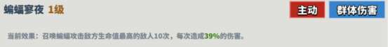 描述:召唤蝙蝠攻击敌方生命值最高的敌人10次,每次造成39%的伤害。