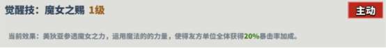描述:美狄亚参透魔女之力,运用魔法的力量,使得友方单位全体获得20%暴击率加成。