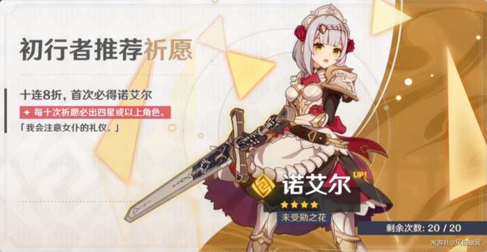 【诺艾尔】新手卡池必获得,完成主线任务,序章“捕风的异乡人”,可获得十连;