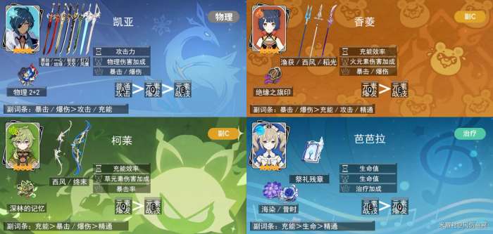 只有凯亚够强,其他角色都是戴着没强化的圣遗物而已。凯亚只有四星羽,强化了15级。