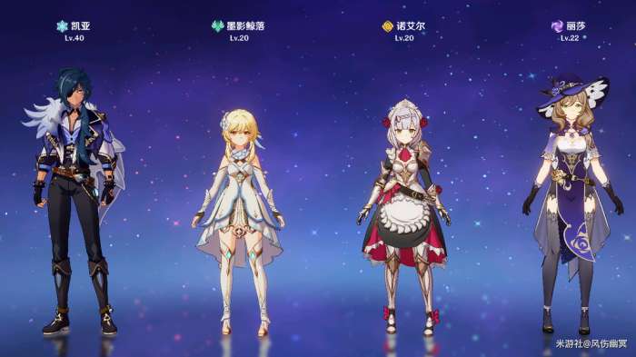 首先,先了解这四个角色,这四个角色是很好的开荒队伍,这四个角色不是固定的,只是后期单独拆出来也能用,所以前期培养起来完全不会浪费。
